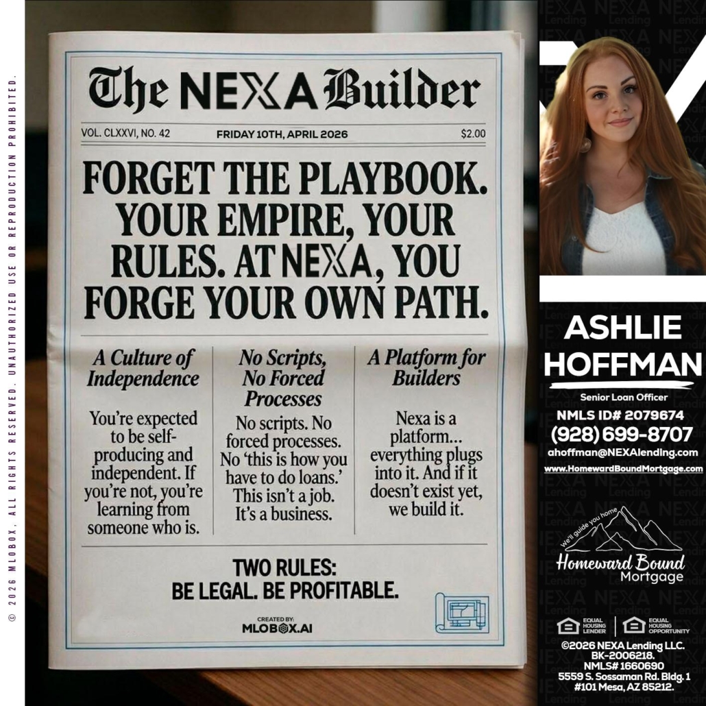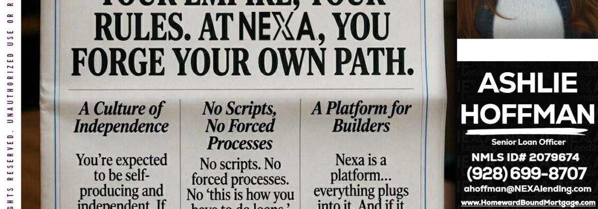 Hi, my name is Ashlie Hoffman. I’m a Loan Officer with NEXA Lending LLC., offering personalized mortgage solutions, fast customized quotes, great rates and service with integrity.